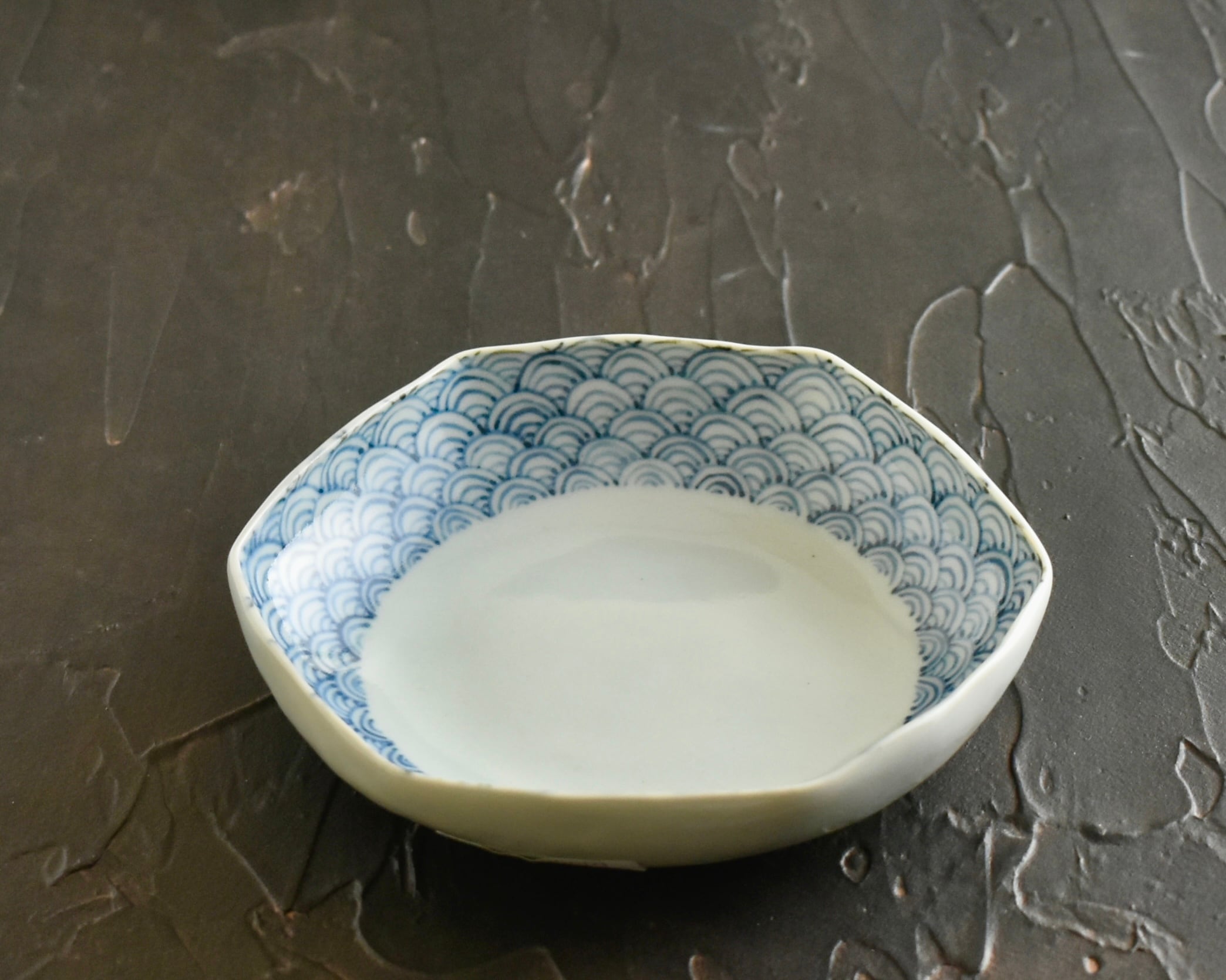 六角形の美しいフォルムに、青海波のデザインを施した中鉢です。伝統的な和柄が施されており、食卓を華やかに彩ります。お料理を盛り付ける際に、その美しさが引き立ち、食事の時間をより特別なものにしてくれることでしょう!