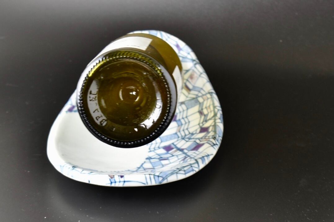 タタラ成形して、ボトルの口が入るように穴を開けました。 一点物です。 縦16.5㎝横23㎝高さ7.8㎝