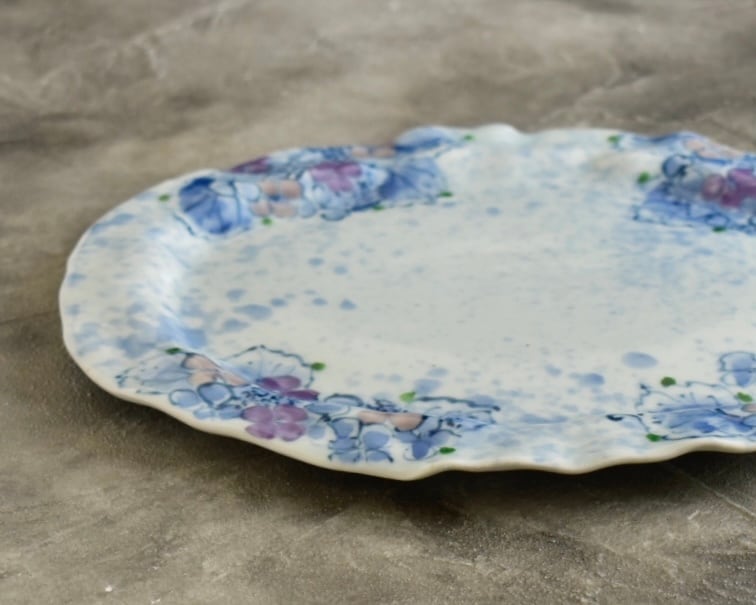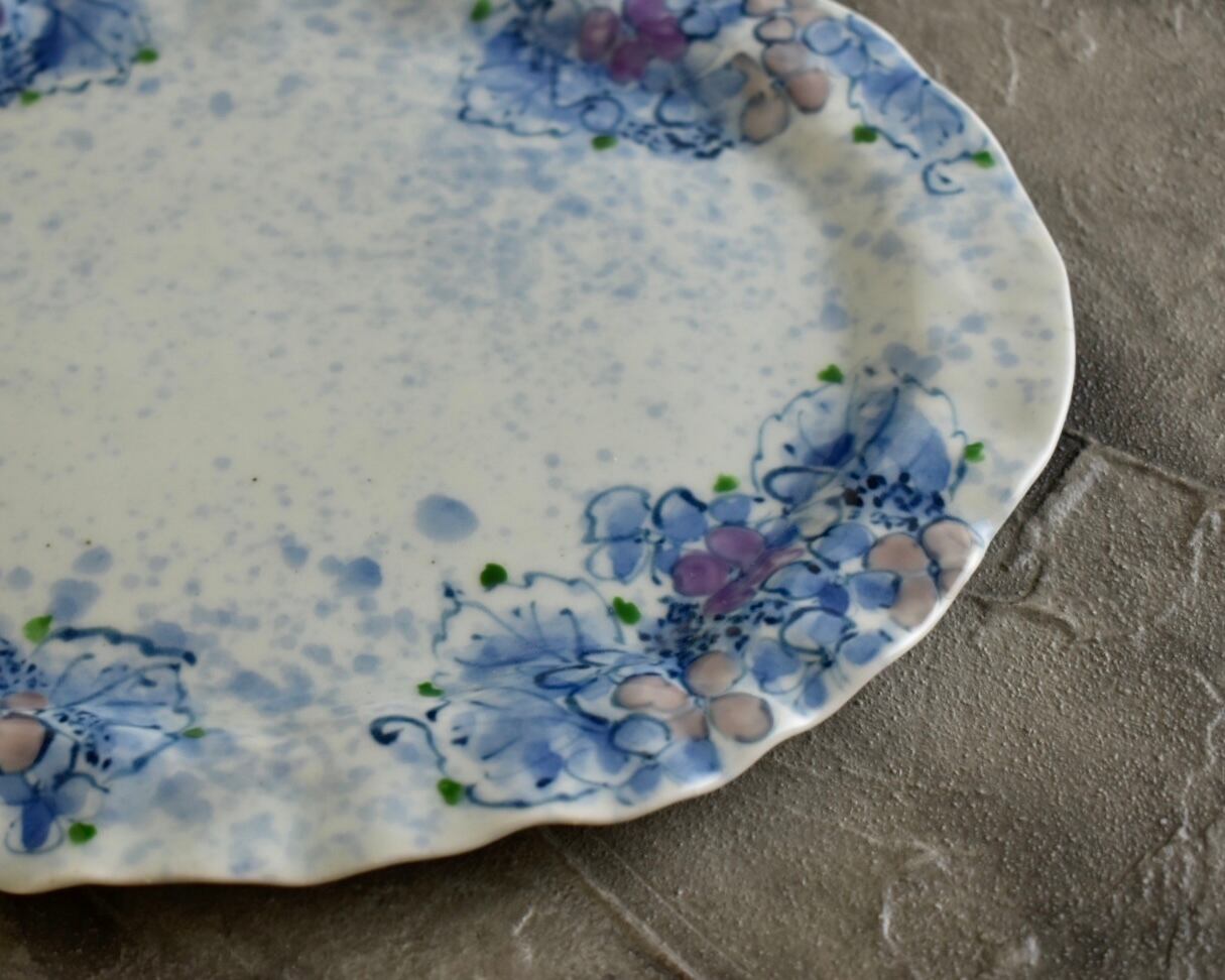手捻り楕円額紫陽花ディナー皿 124 | 玉峰窯