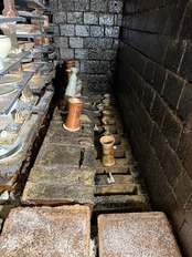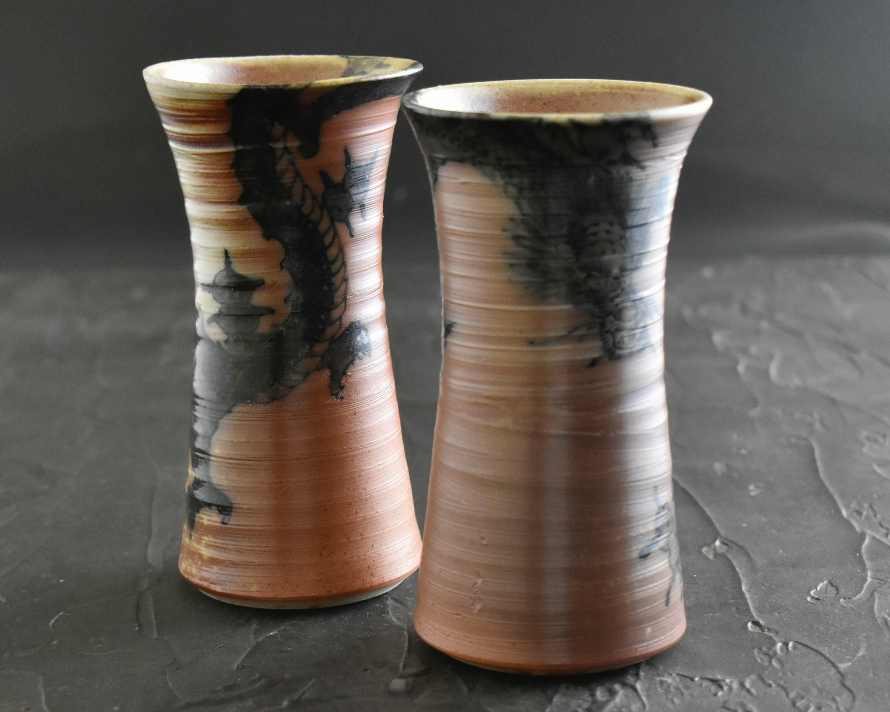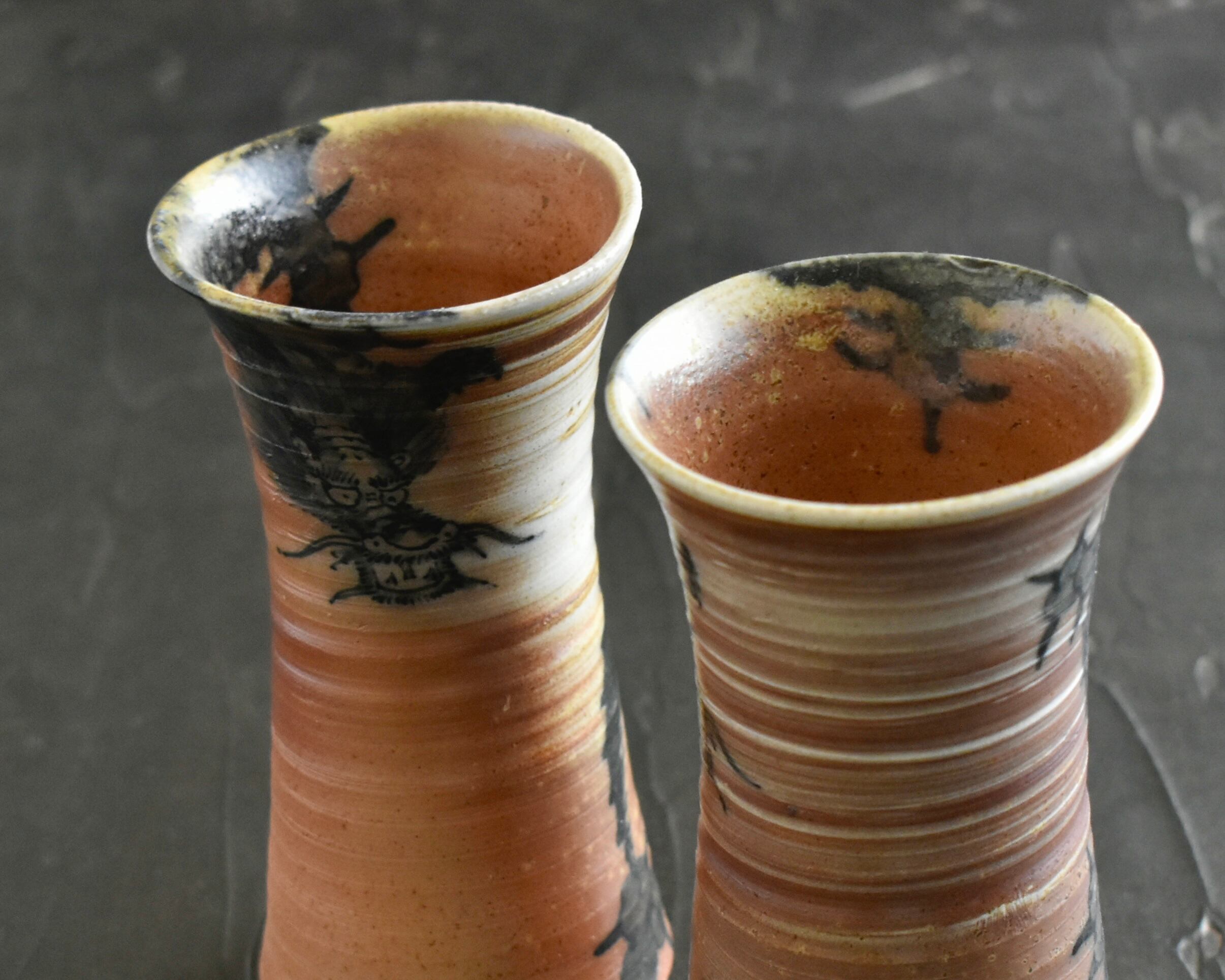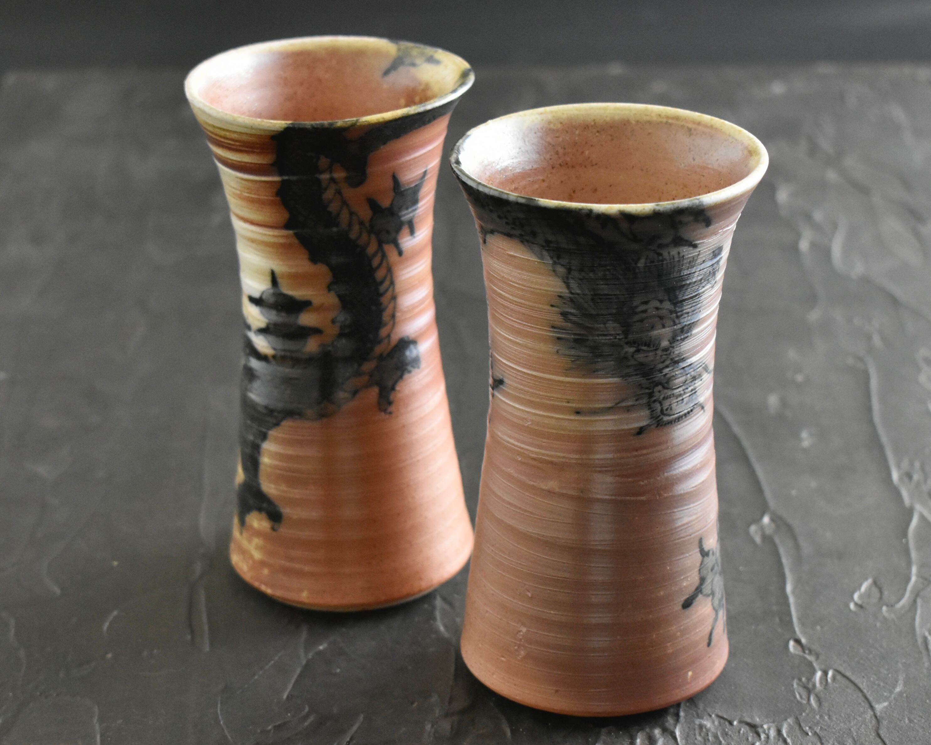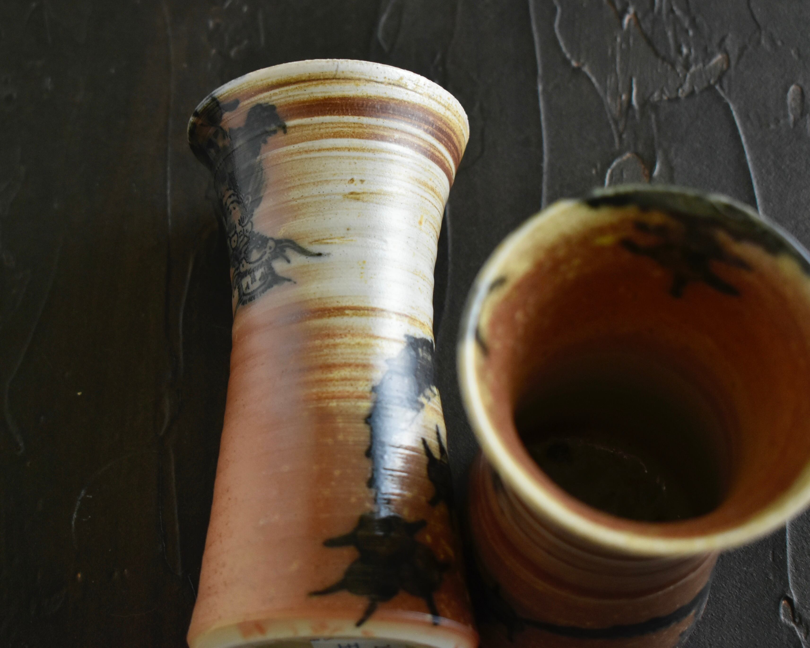 普段は、素焼きして絵付けしてから釉薬を掛けるのですが、こちらは釉薬をかけずに登り窯の1番火が強く灰が被る所で焼きました。